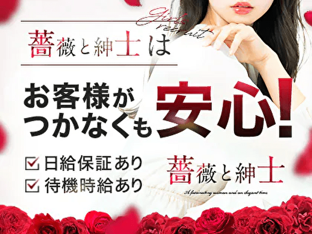 - ・毎月の収入を増やしたい方 ・子供の教育費をもっと貯めたい方 ・家事や育児の空いた時間を有効活用したい方 ・大人の女性として輝ける場所をお探しの方 私たちは大人の女性に「癒し」を求めているお客様が多いことを実感しております。 薔薇の紳士はそんな貴女の想いを実現いたします。